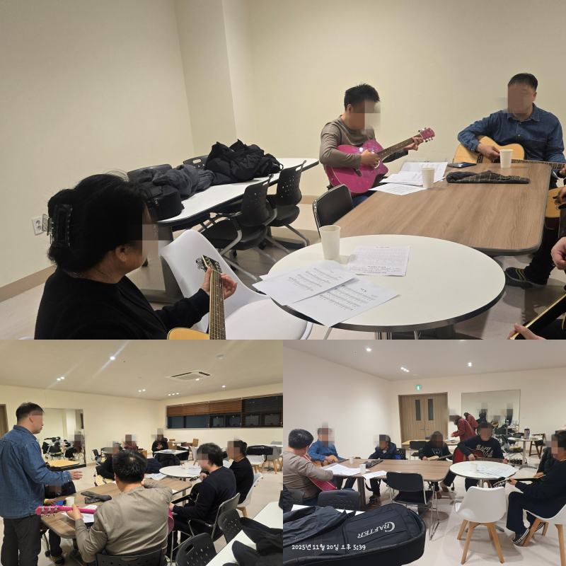 참여자들은 악보를 보며 기타 코드를 익혀온 과정을 되돌아보고 서로의 성장을 확인하는 시간을 가졌습니다.