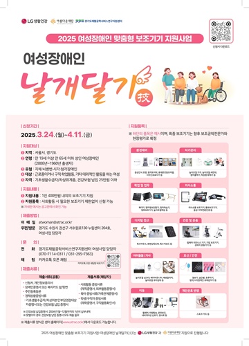 이번 사업은 근로·구직·학업 등 사회활동을 하거나 이를 병행하며 자녀를 양육하는 서울·경기 지역 거주 만 19세 이상 65세 이하 여성장애인 20명을 대상으로 1인당 최대 400만 원 안팎에서 맞춤형 보조기기를 지원한다.