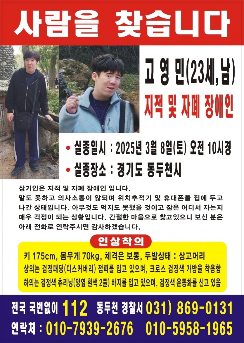 실종일시 : 2025년 3월 8일(토) 오전 10시경