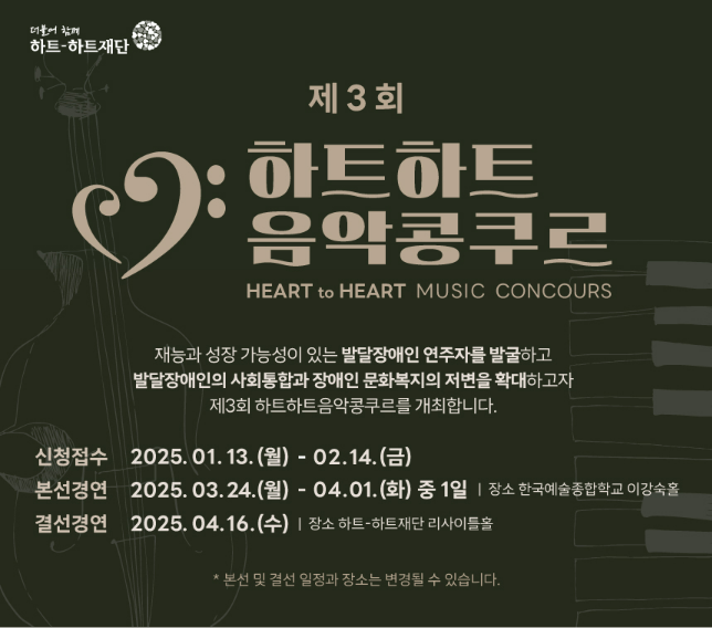 하트-하트 재단에서 진행하는 발달장애인 연주자 콩쿠르 신청이 있습니다.
