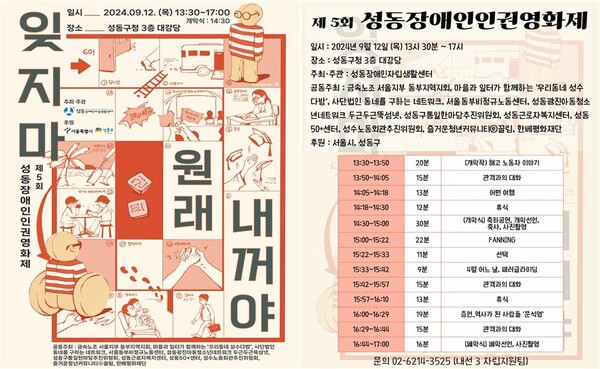 성동장애인자립생활센터가 오는 9월 12일 오후 1시 30분 서울 성동구 성동구청 3층 대강장에서 제5회 성동장애인인권영화제 “잊지마! 원래 내꺼야!”를 개최한다.