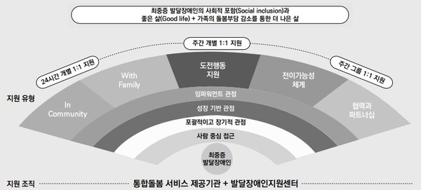이러한 최중증 발달장애인 통합돌봄은 보다 질 높은 통합돌봄 체계 구현을 통해 최중증 발달장애인과 그 가족이 지역사회 안에서 행복한 보통의 삶을 구현할 수 있도록 최중증 발달장애인의 사회적 포함과 좋은 삶, 가족의 돌봄 부담 감소를 통한 더 나은 삶을 지향하는 것을 목적으로 해야 한다는 제언이다.