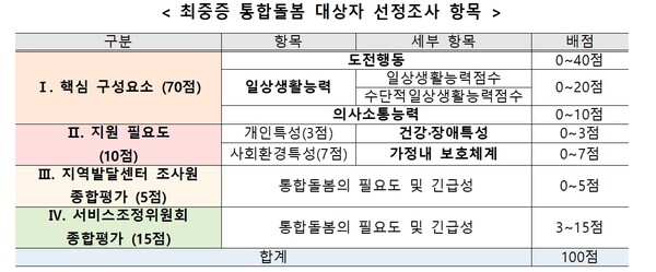 서비스 대상자는 도전행동 심각성 여부를 핵심 요소로 일상생활능력, 의사소통능력, 지원필요도를 종합해 선정할 예정이다.