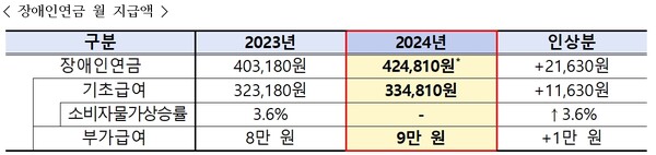 이달부터 장애인연금의 기초급여와 부가급여가 인상돼 단독가구 기준 최대 42만 4,810이 지급된다.