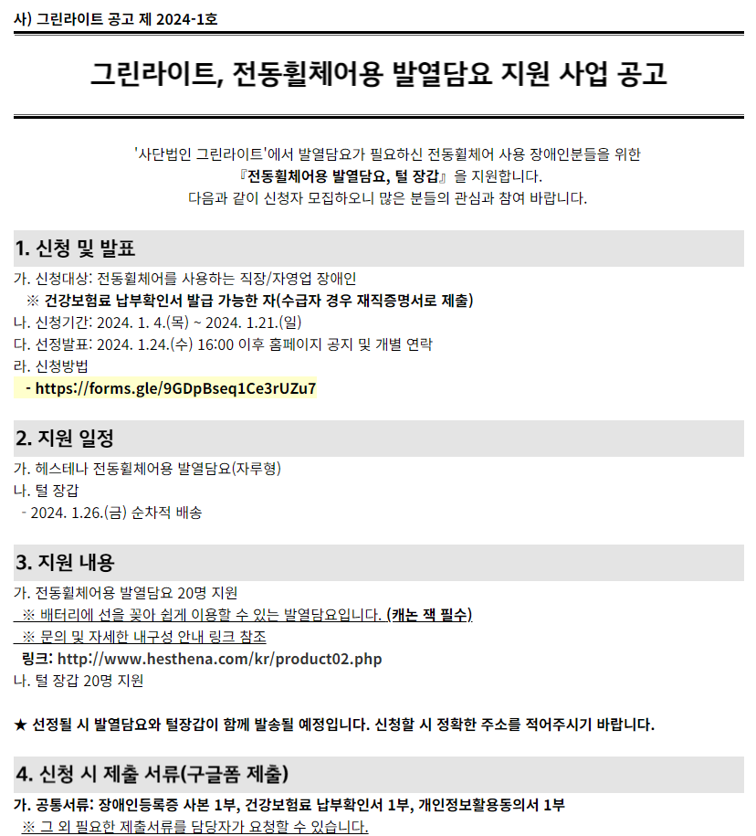 [공유] 그린라이트, 전동휠체어용 발열담요 지원사업 페이지 정보 작성자 하남시장애인가족지원센터 댓글 0건 조회 1,185회 작성일 24-01-15 10:30 목록 본문 . 이전글기아 초록여행, 설 명절 장애인 가정 귀성길 지원 24.01.15 다음글이달부터 장애인연금 단독가구 월 최대 42만 4,810원 지급 24.01.08 댓글 0 댓글목록 등록된 댓글이 없습니다.
