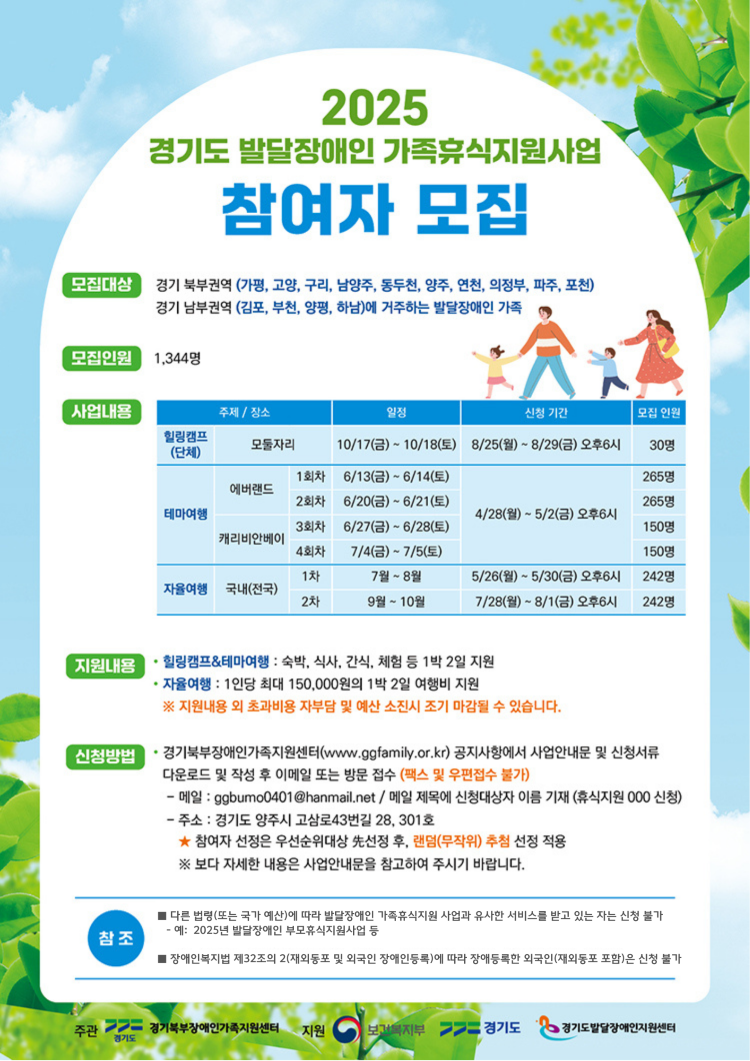 2025년 경기도 발달장애인 가족휴식지원사업 참여자 모집 페이지 정보 작성자 하남시장애인가족지원센터 댓글 0건 조회 353회 작성일 25-04-25 09:21 목록 본문 . 이전글2025년 경기도 발달장애인 가족휴식지원사업 테마여행 참여자 추가 모집 25.05.09 다음글2025 국제 스페셜 뮤직&아트 페스티벌 국내 발달장애 참가자 모집 25.04.23 댓글 0 댓글목록 등록된 댓글이 없습니다.