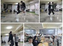 - 기본동작으로 몸푸는 스트레칭을 진행 - 탭,스텝, 조깅 등을 반복해서 동작을 익히고 트램폴린 위에서 점핑 기본동작을..