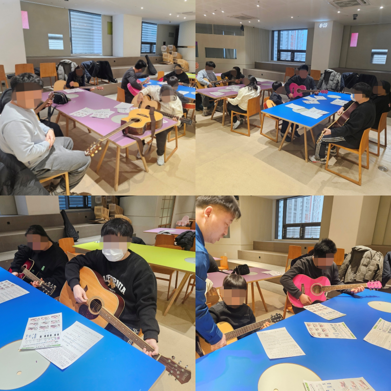 * 악보를 보며 기타의 구조와 음계의 대한 소리를 알아보는 시간을 가졌다.