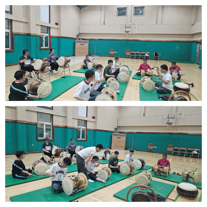 - 새로운 리듬으로 장구 및 북을 치는 수업을 진행 (덩 덩 덩따쿵), (덩 덕쿵 덩 따쿵따), (덩덩덩 덩덩덩), (덩쿵덩쿵 덩따쿵따), (덩 뚜루루루 따쿵따)