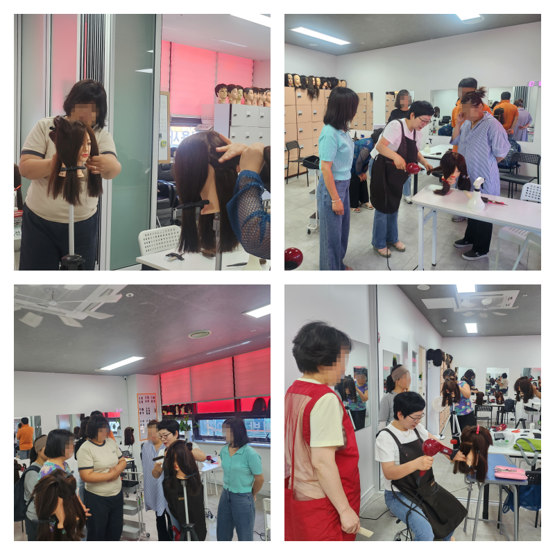 **여러 헤어 스타일을 배워 스스로가 인모가발에 직접 머리를 말아 디자인 해보는 시간을 가졌습니다.