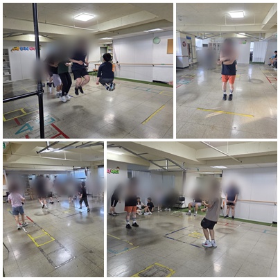 프로그램의 심화학습을 위하여 음악에 맞추어 느리게 뛰는 연습을 하였습니다.