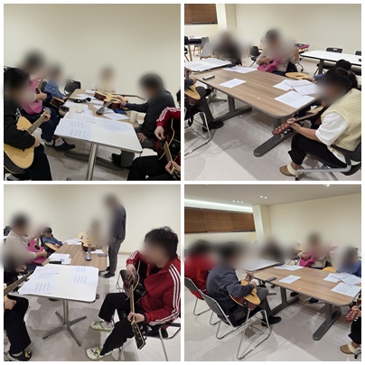 지난 시간에 이어 리코더와 기타 합주로 수업이 진행되었습니다.