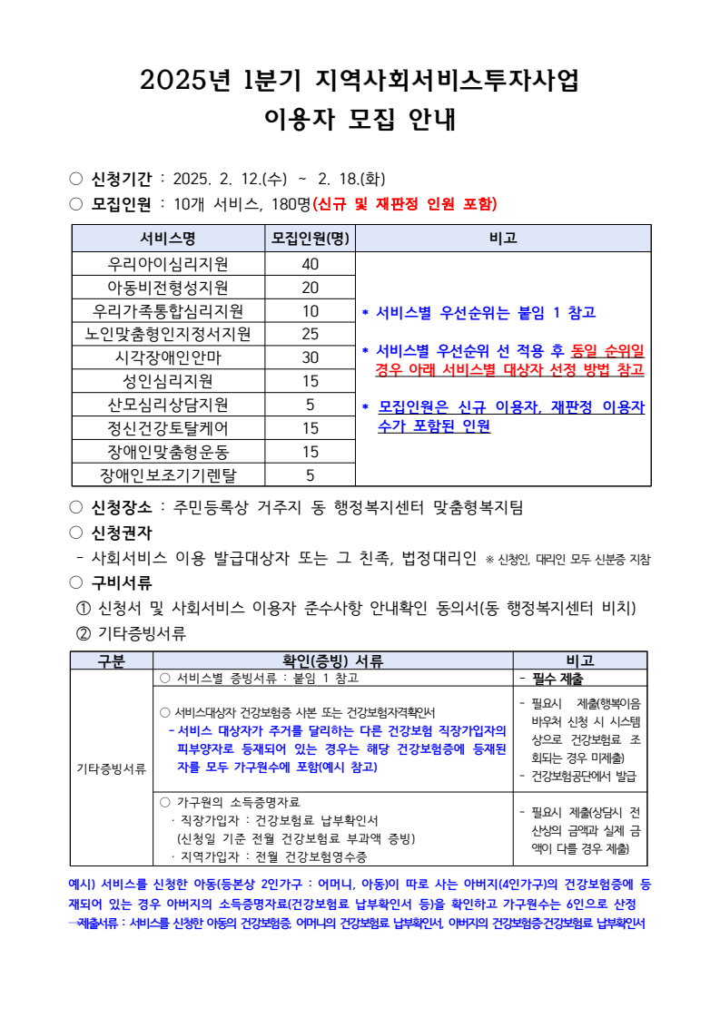 ※각 서비스에 대한 문의사항은 거주지 행정복지센터로 문의바랍니다.