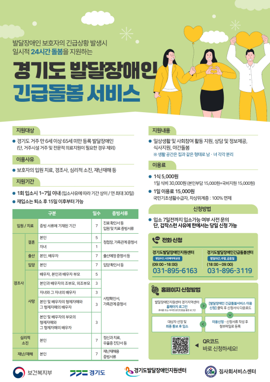 경기도는 발달 장애인 보호자의 입원, 경조사, 신체적ᆞ심리적 소진 등 긴급 상황 발생 시