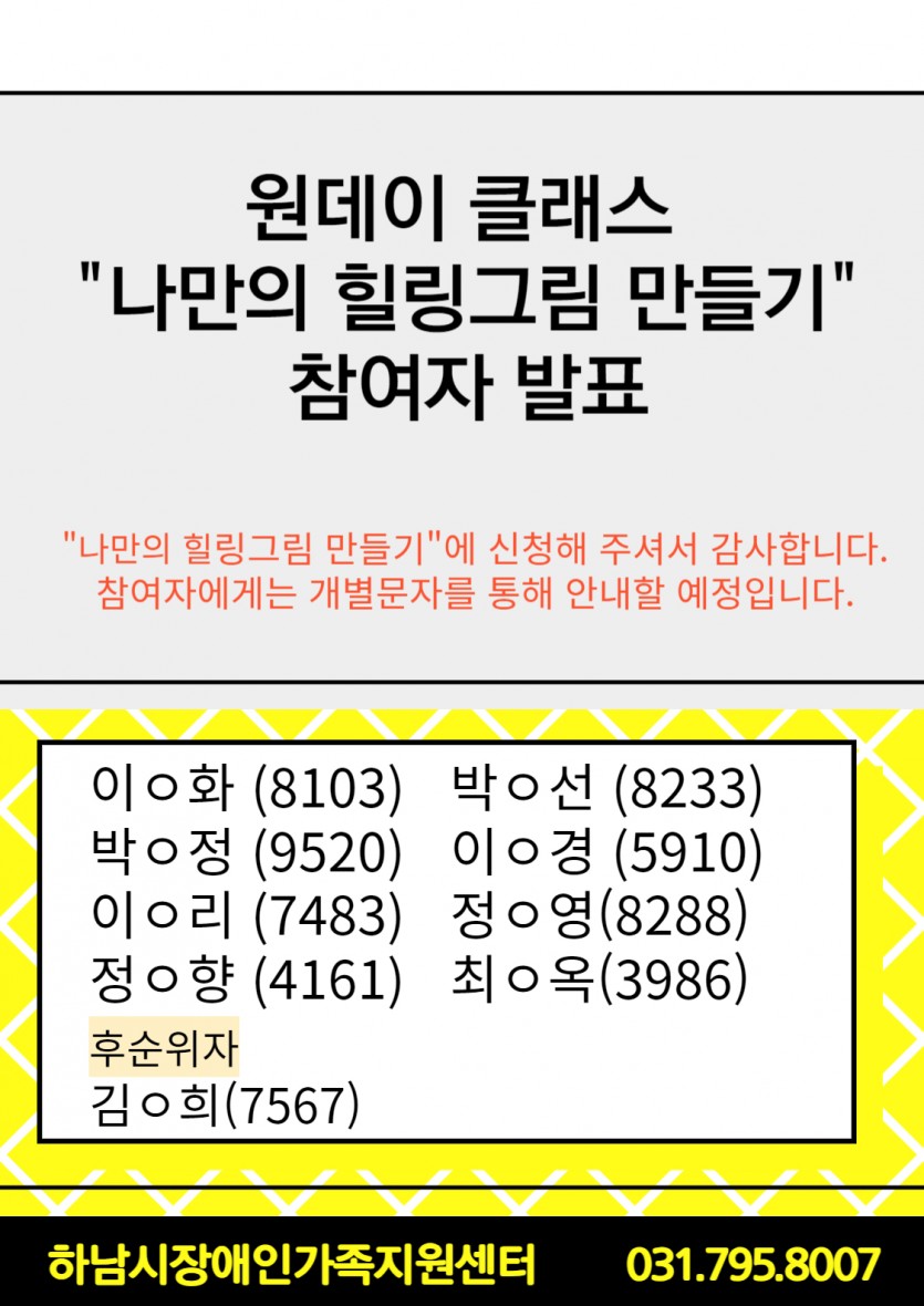 [11월 24일] 원데이클래스 참여자 명단입니다. > 공지사항