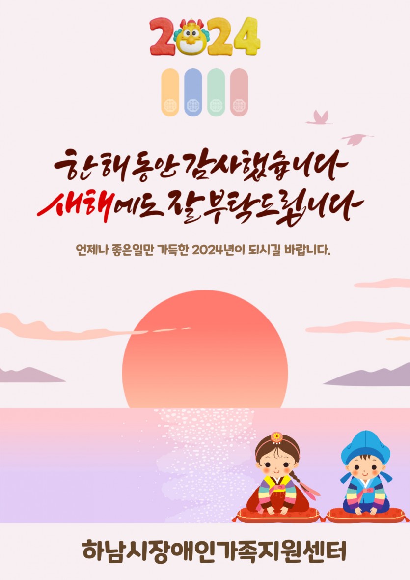 2023년의 힘들고 어려웠던 일들 잘 정리하시고 2024년 갑진년 푸른용띠의 기운을 담아 밝고 힘찬 한해를 맞이하시길 바랍니다!