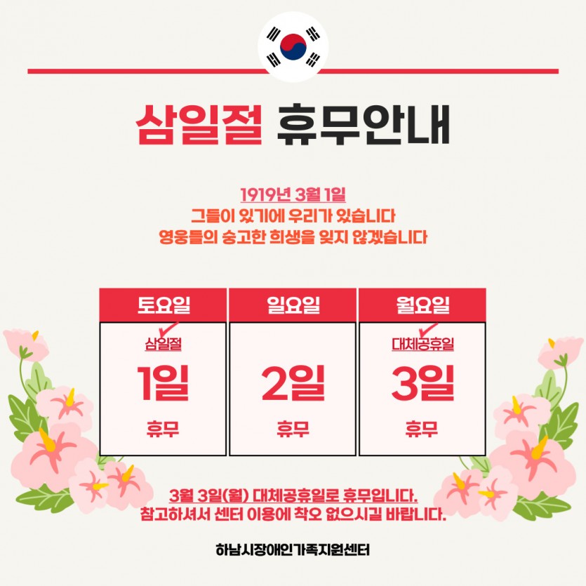 삼일절 및 대체공휴일 휴무안내 > 공지사항