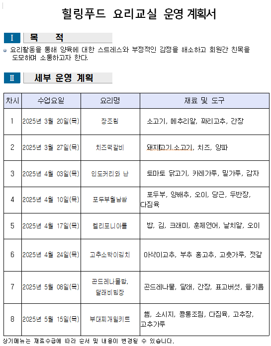 - 이전글[자조모임] 힐링푸드 요리교실 이용자 확정 명단 25.03.05