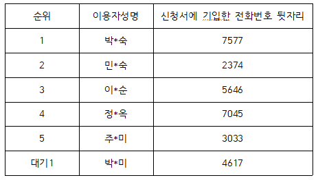 [소확행 "힐링 상자텃밭" 지원사업] 이용자 명단입니다.