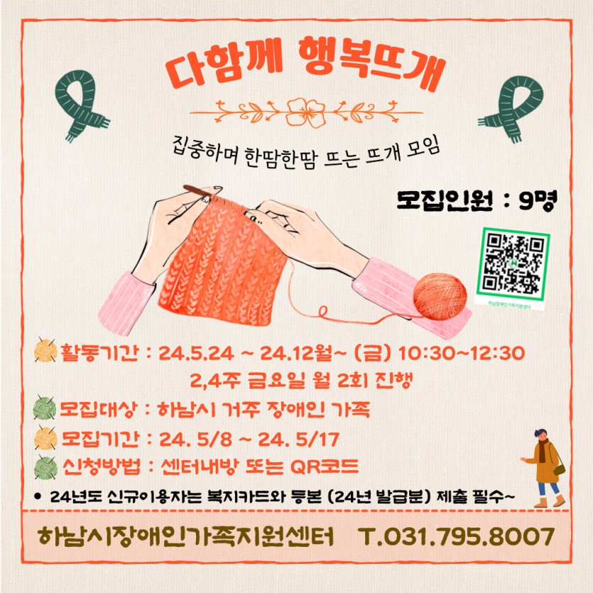 [자조모임] "다함께 행복뜨개" 이용자 모집 안내입니다.