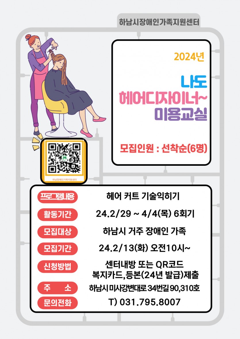[자조모임] "나도 헤어디자이너~" 미용교실 이용자 모집 공지입니다.