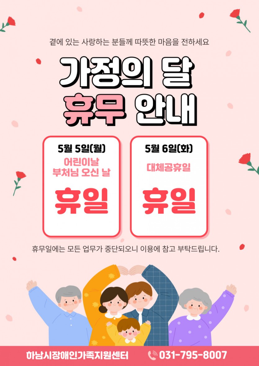 5월 가정의 달 휴무 안내 페이지 정보 작성자 하남시장애인가족지원센터 댓글 0건 조회 247회 작성일 25-05-02 14:03 목록 답변 본문 . 이전글[자조모임] "힐링푸드 요리교실 2기" 이용자 확정명단입니다. 25.05.20 다음글근로자의 날 휴관 공지 안내 25.04.29 댓글 0 댓글목록 등록된 댓글이 없습니다.
