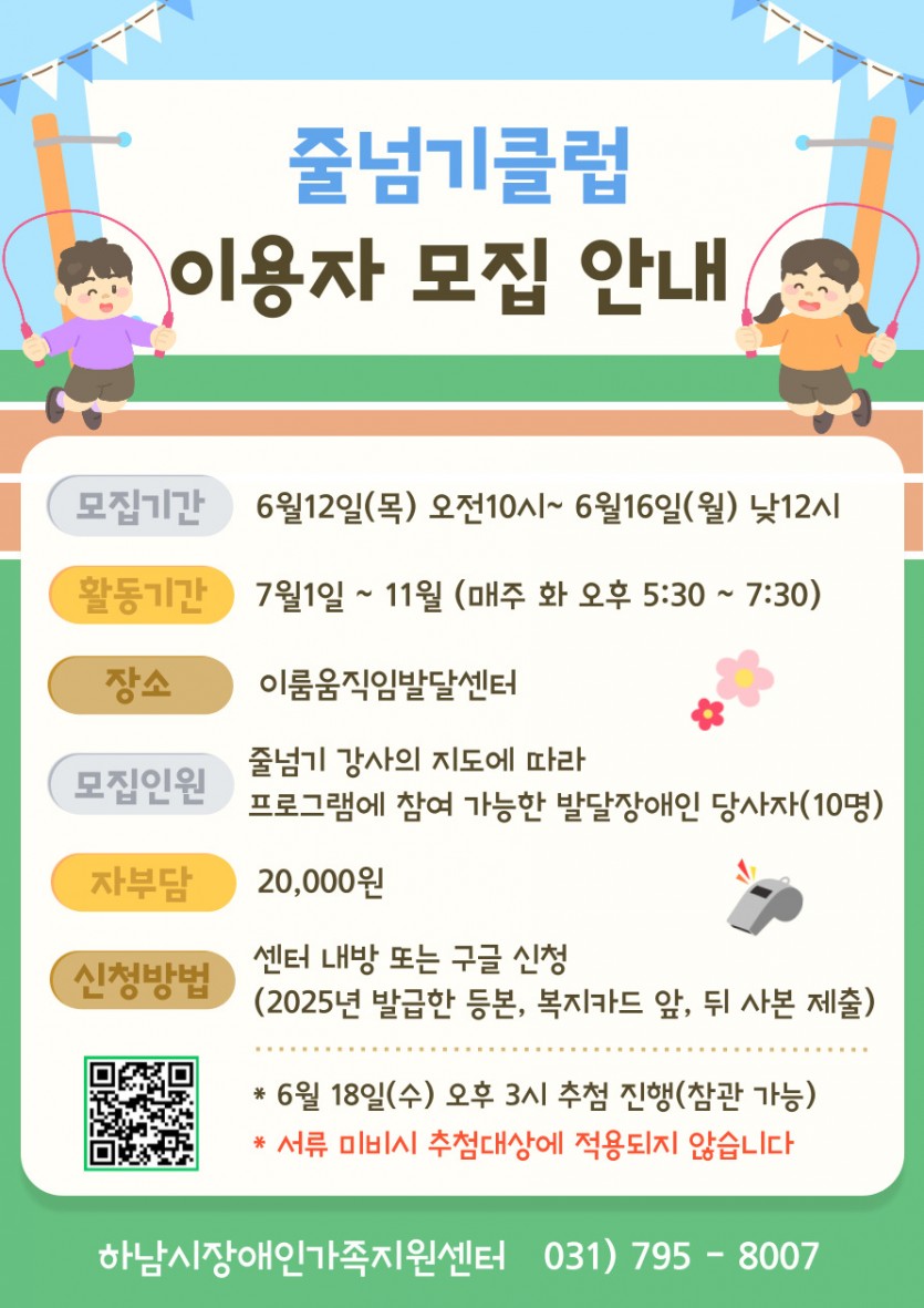 [장애특화프로그램] "줄넘기클럽" 이용자 모집 > 공지사항