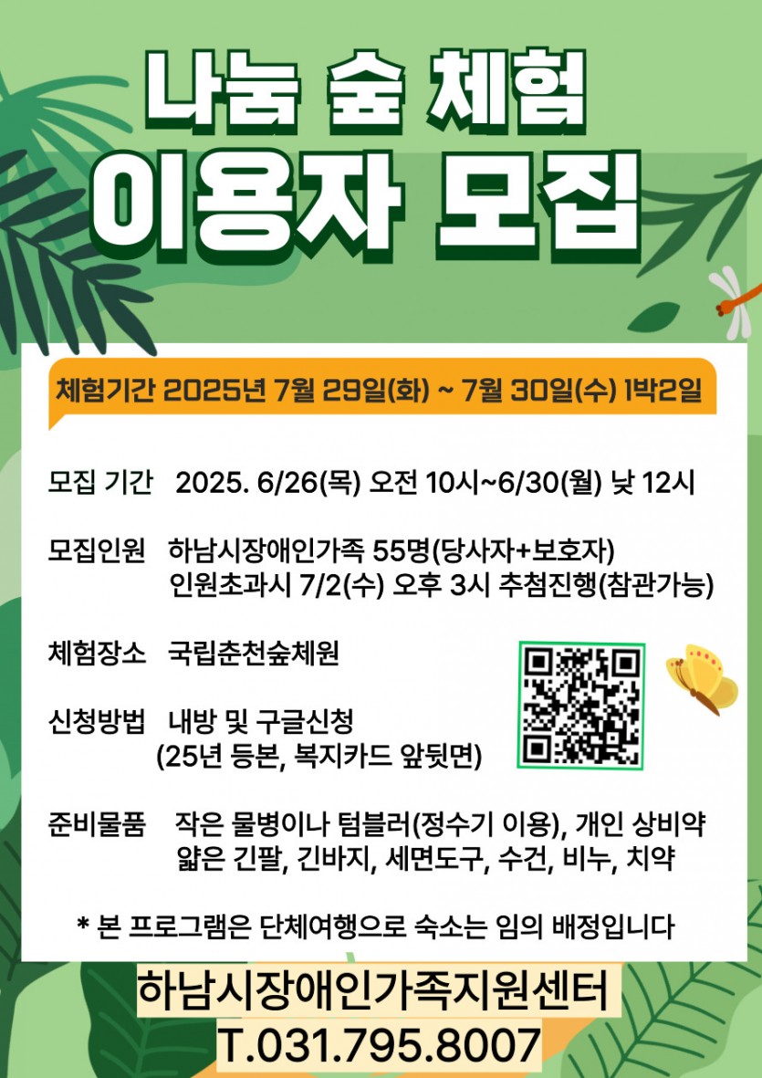 [가족휴식지원] 춘천 나눔의 숲 체험 이용자모집 사전공지