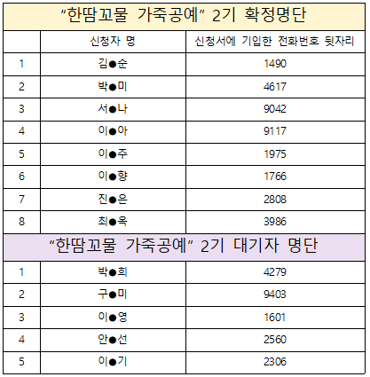 대기자분들은 선정자가 취소시 개별 연락 드리겠습니다.