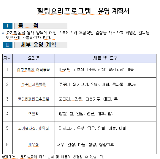 [자조모임] 힐링푸드 요리교실 이용자 선공지 안내