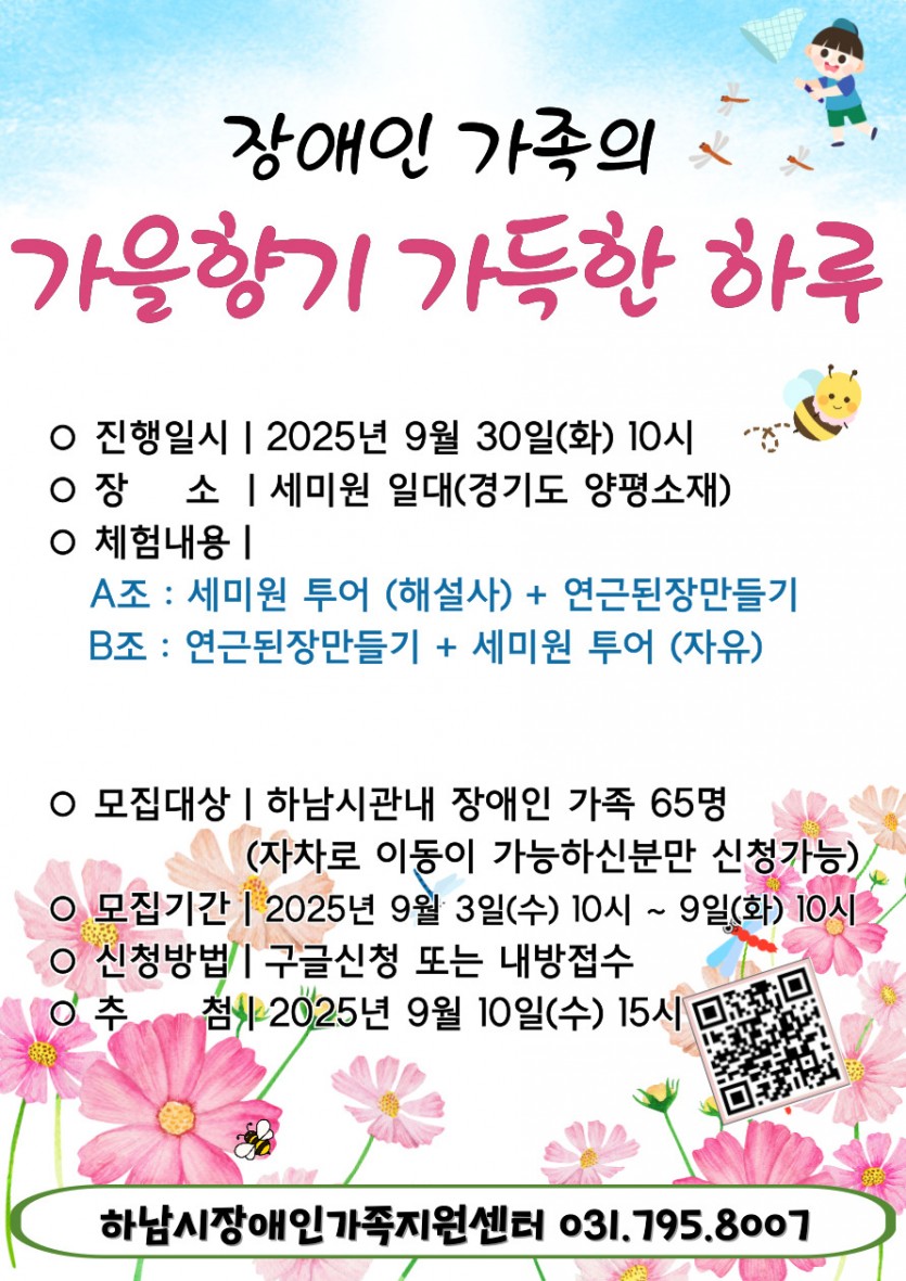 2025년 단체수련회 "장애인 가족의 가을향기 가득한 하루" 이용자모집