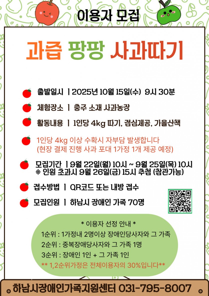 [가족휴식지원] 사과따기체험 "과즙 팡팡 사과따기" 이용자 모집 안내