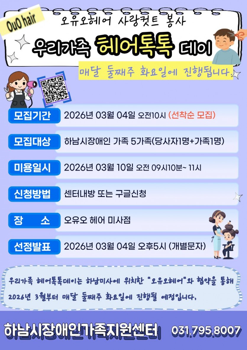 2026년 "우리가족 헤어톡톡"데이 이용자 안내