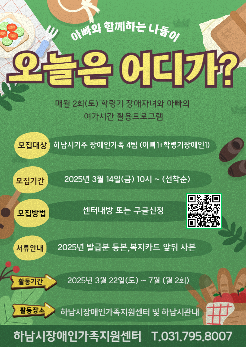 ▶모집 대상: 하남시 거주 장애인 가족 4팀 (아빠1+학령기장애인1)