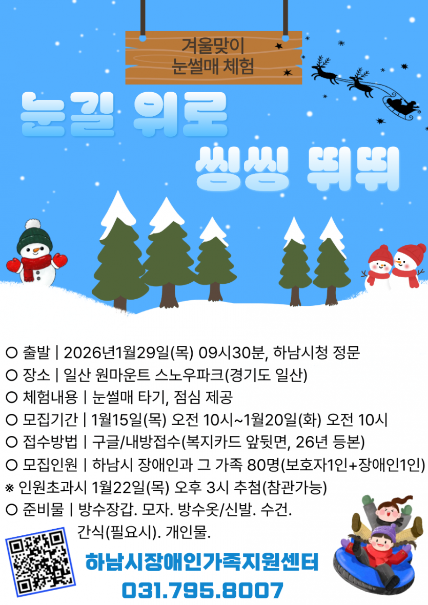 [가족휴식지원] 겨울맞이 눈썰매 체험 '눈길 위로 씽씽 뛰뛰' 이용자 모집