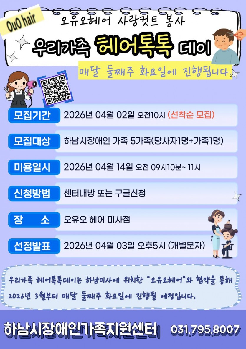 4월 우리가족 "헤어톡톡"데이 이용자 선공지 안내